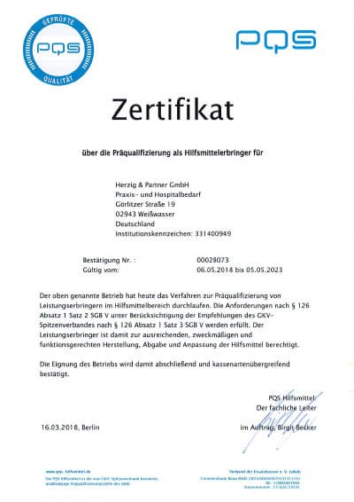 Bestätigung unserer fachlichen Eignung für die Versorgung im Gesundheitswesen.