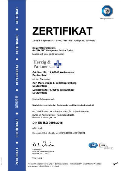 Als präqualifizierter Hilfsmittelerbringer (ISO 9001:2015) garantieren wir höchste Standards in der Versorgung und Abrechnung.